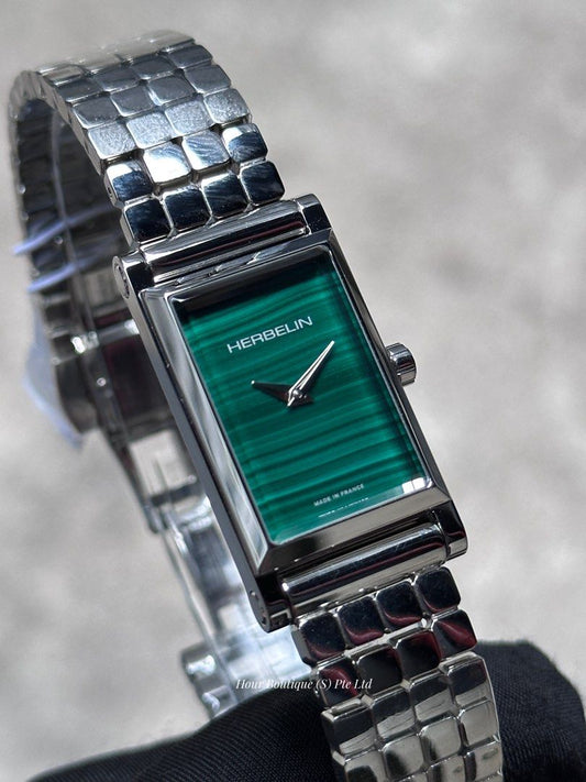 Brand New Herbelin Antares Interchangeable Green Malachite Mineral Dial Ladys Quartz Watch