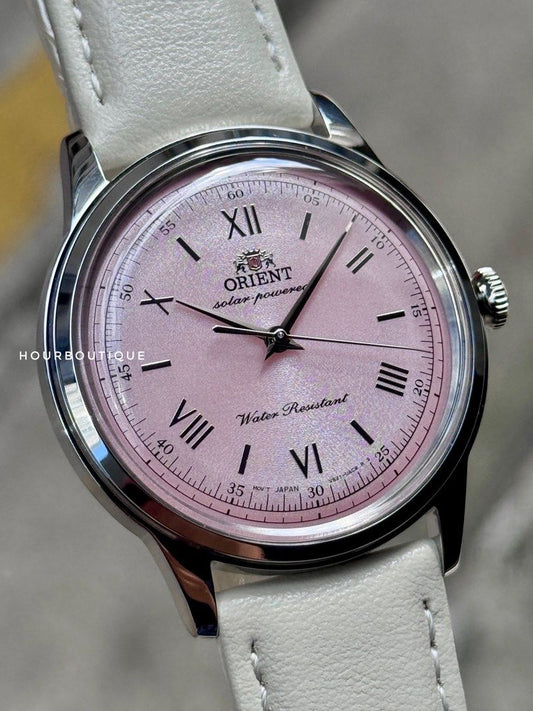 Brand New Orient Bambino Solar Powered Pastel Pink Dial Watch RA-WK0005P