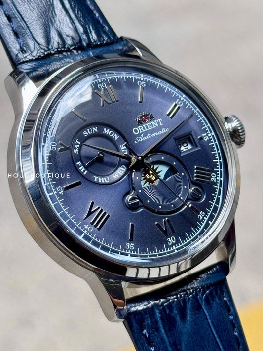 Brand New Orient Bambino Sun Moon Blue Dial Automatic Watch RA-AK0806L