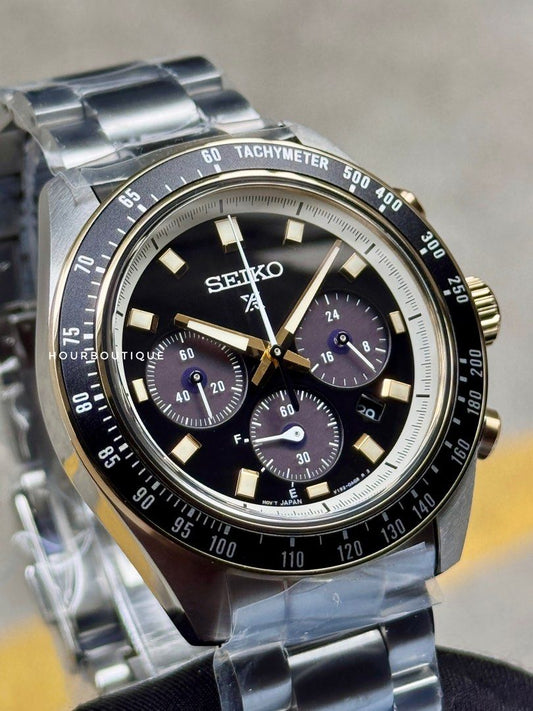 Brand New Seiko Prospex SpeedTimer Solar Powered Chrono Black Gold Dial Watch SSC941P1
