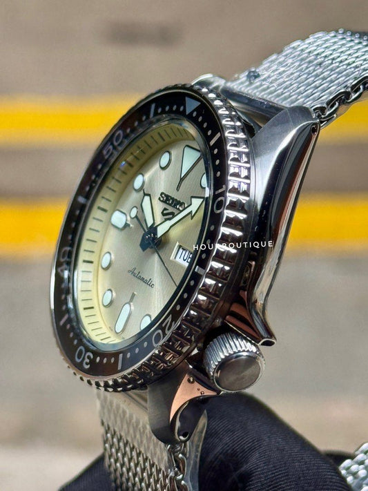 Brand New Seiko 5 Cream Dial Automatic Watch on Mesh Bracelet SRPD67K1