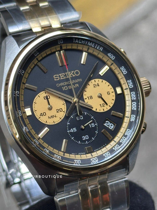 Brand New Seiko Half Gold Quartz Chronograph Watch SSB430P1