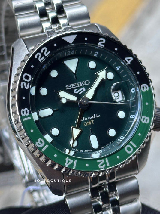 Brand New Made In Japan Seiko 5 Sprite Back Green Automatic GMT Watch SBSC019 SSK035K1