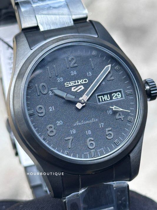 Brand New Seiko 5 Stealth Black metal Bracelet Automatic Watch SRPJ09J1