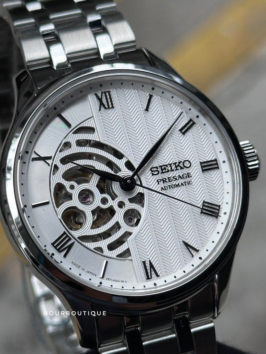 Brand New Seiko Presage Japanese Garden White Dial Automatic Skeleton Watch SARY251