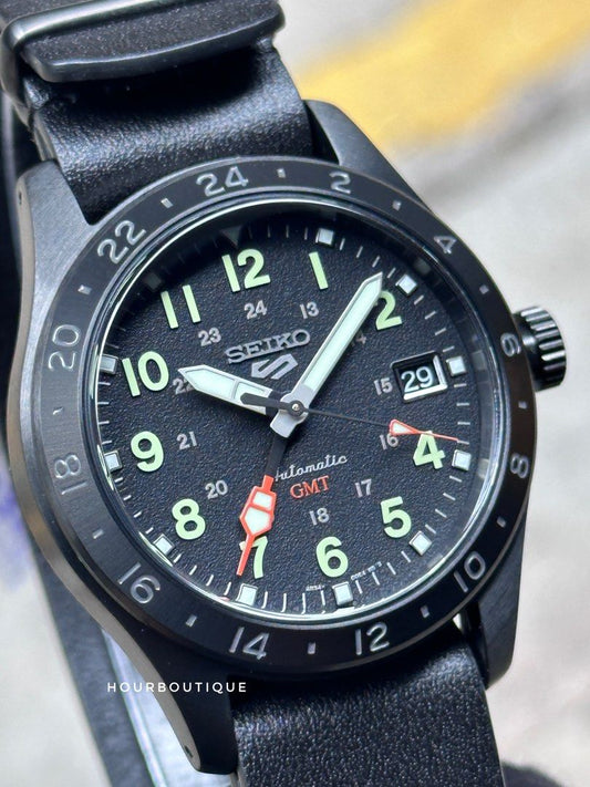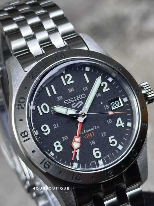 Brand New Seiko 5 Black Dial Explorer Automatic GMT Watch SSK023K1