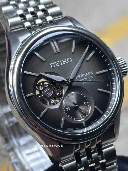 Brand New Seiko Presage Classic Series Black Dial Open Heart Automatic Watch SARJ009