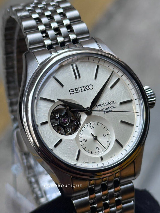 Brand New Seiko Presage Classics Open Heart White Dial Nens Automatic Watch SARJ007