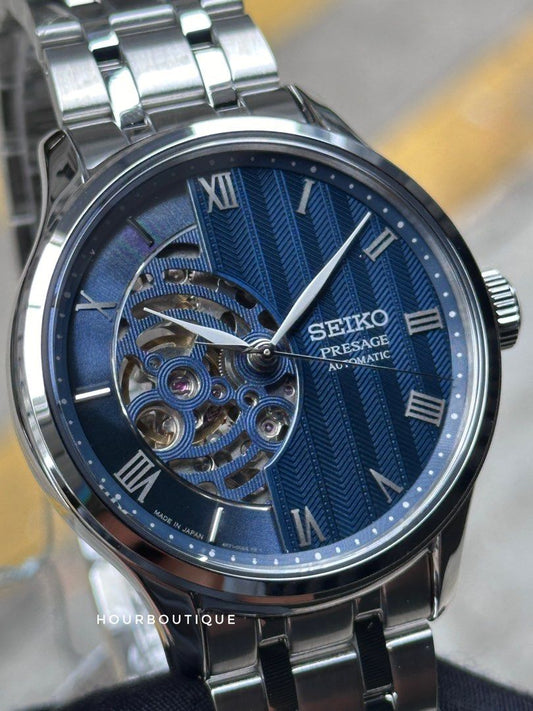 Brand New Seiko Presage Japanese Garden Blue Dial Automatic Skeleton Watch SARY253