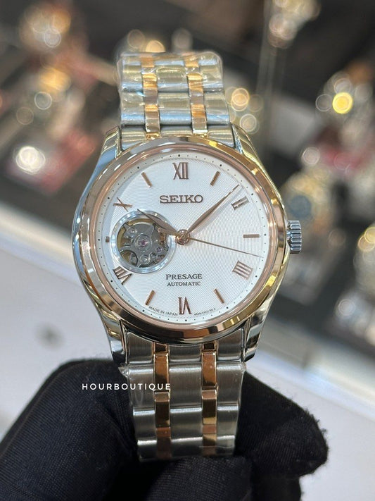 Brand New Seiko Presage 38mm Two Tone Automatic White Dial Watch SARY174 SSA412J1