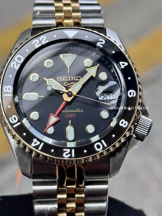Brand New Seiko 5 GMT Two Tone Automatic Watch with after market bracelet SSK036K1