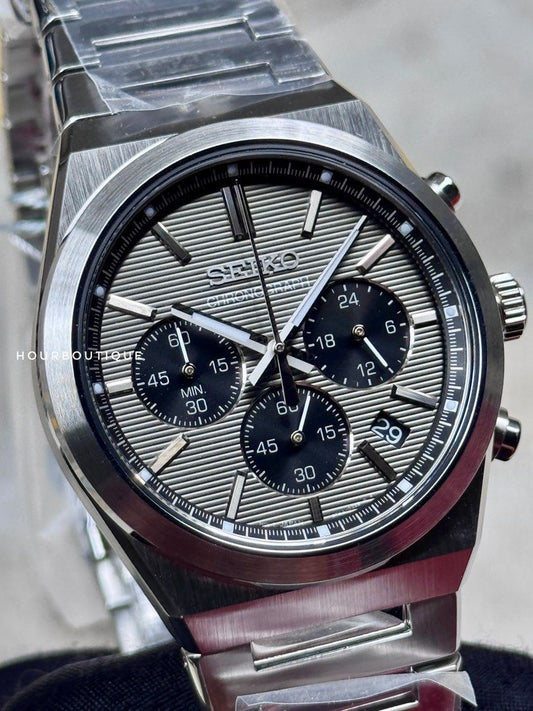 Brand New Seiko Chronograph Quartz Grey Dial Mens Watch SSB455P1