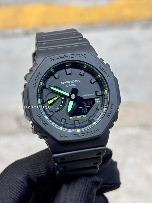 Brand New Casio G-Shock Matt Black with Green Watch GA-2100-1A3