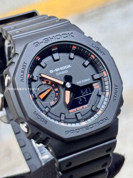 Brand New Casio G-Shock Oak Matt Black with Orange Watch GA-2100-1A4