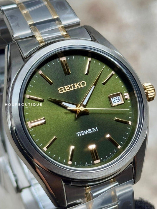 Brand New Seiko Titanium Case Green Dial Sapphire Crystal Quartz Watch SUR377P1