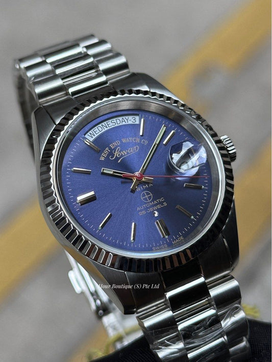 Westend Watch Co. Sunburst Blue Dial Day Date Swiss Made Automatic Watch