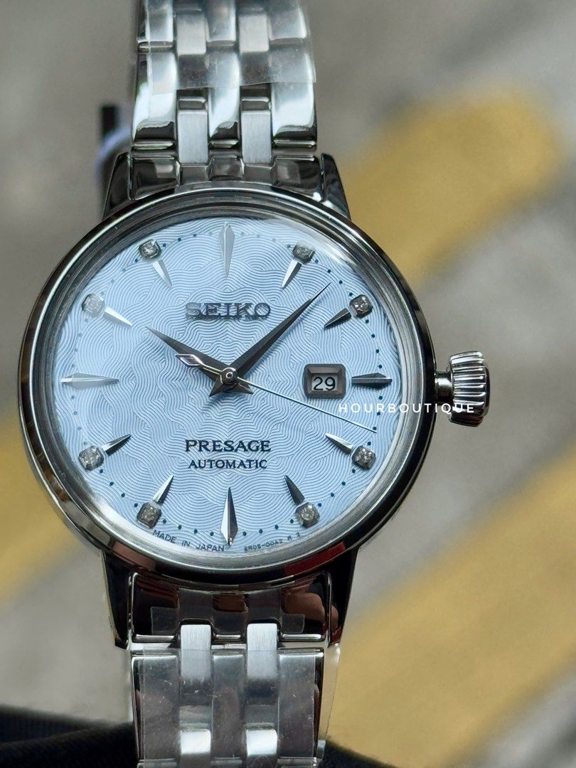 Brand New Seiko Presage Ladys Pastel Blue Dial With Genuine Diamond Index Automatic Watch SRE007J1
