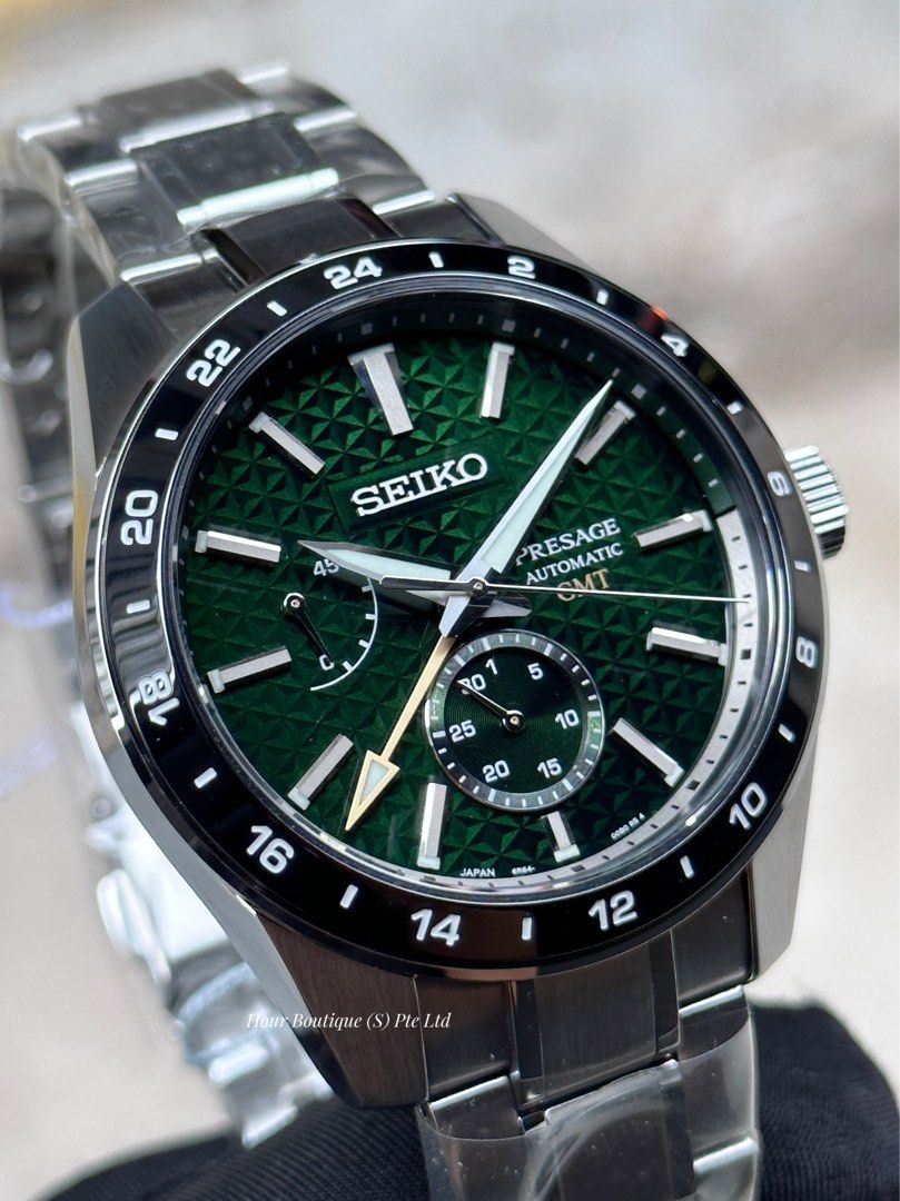 Brand New Seiko Presage Sharp Edged Green Dial Automatic GMT Watch SPB219 SARF003