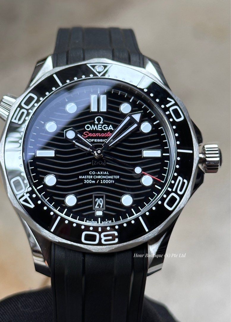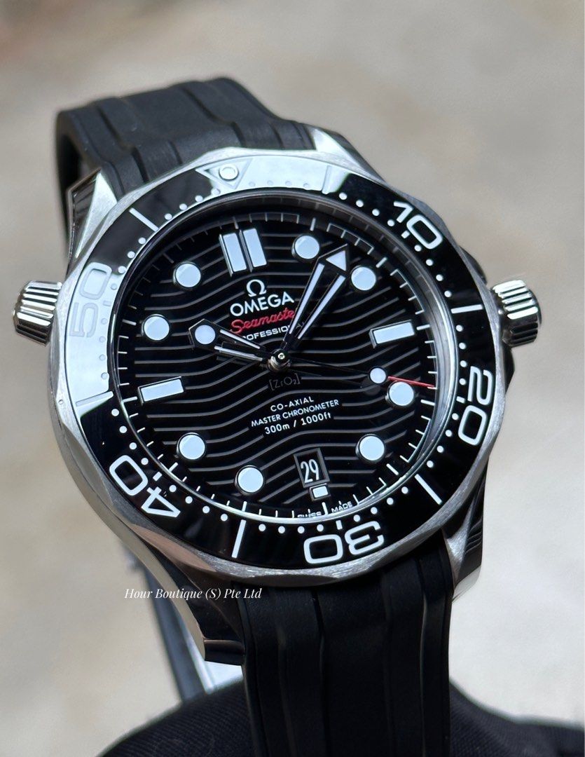 Brand New Omega SeaMaster 300 Black On Rubber Men's Automatic Divers Watch 210.32.42.20.01.001